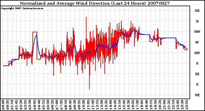 20070927 Normalized and Average Wind Direction (Last 24 Hours)