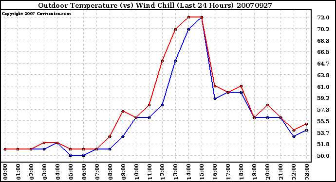Milwaukee Weather -- 20070927 Outdoor Temperature (vs) Wind Chill (Last 24 Hours) -- From curtronics.com by Curt Blank