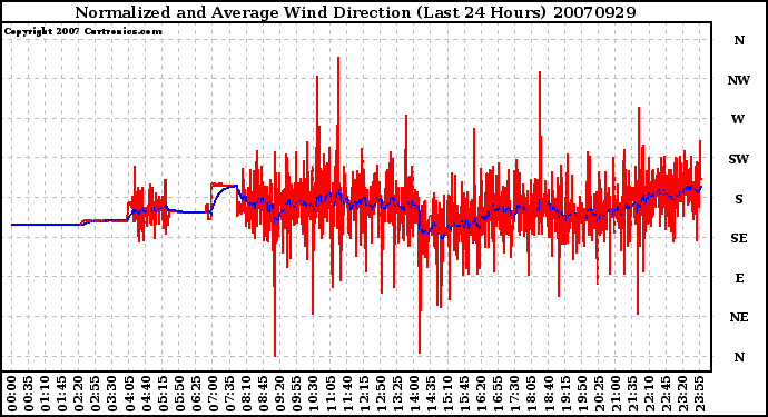 20070929 Normalized and Average Wind Direction (Last 24 Hours)