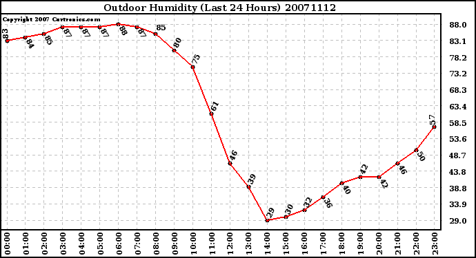 20071112 Outdoor Humidity (Last 24 Hours)
