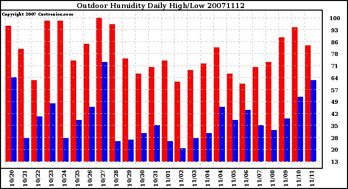 Milwaukee Weather -- 20071112 Outdoor Humidity Daily High/Low -- From curtronics.com by Curt Blank