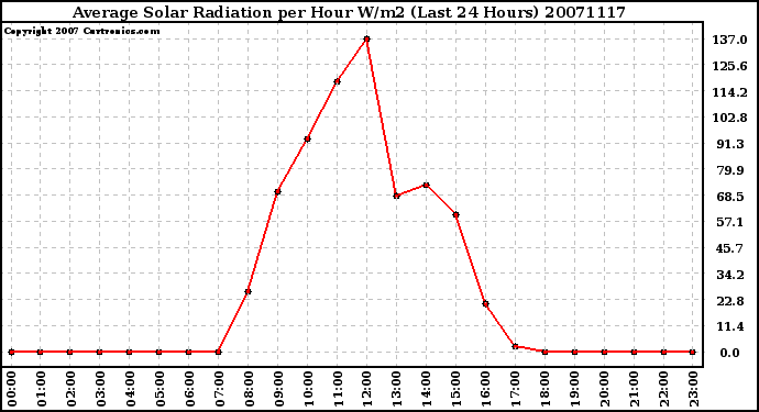Milwaukee Weather -- 20071117 Average Solar Radiation per Hour W/m2 (Last 24 Hours) -- From curtronics.com by Curt Blank