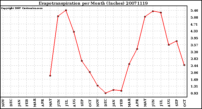 Milwaukee Weather -- 20071119 Evapotranspiration per Month (Inches) -- From curtronics.com by Curt Blank