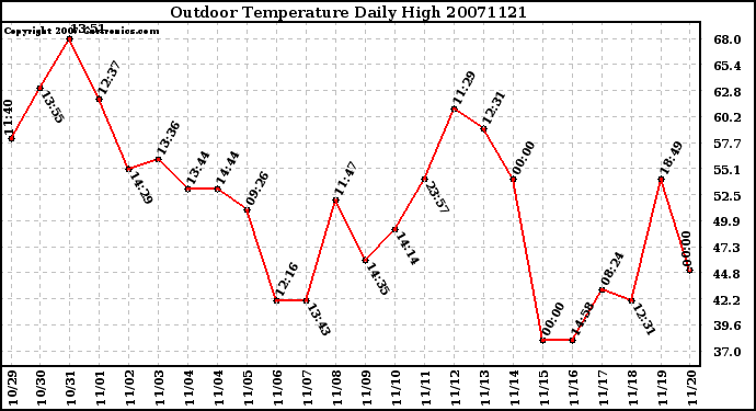 Milwaukee Weather -- 20071121 Outdoor Temperature Daily High -- From curtronics.com by Curt Blank