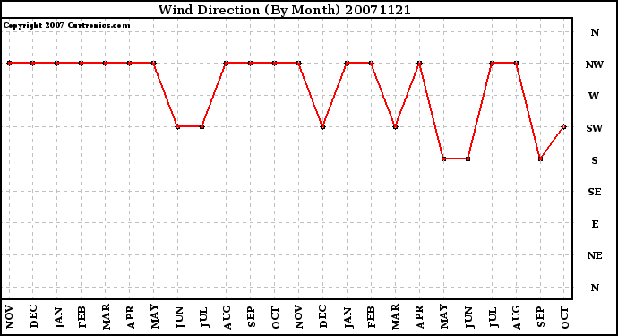 Milwaukee Weather -- 20071121 Wind Direction (By Month) -- From curtronics.com by Curt Blank