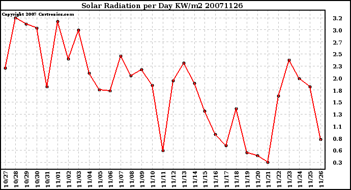 Milwaukee Weather -- 20071126 Solar Radiation per Day KW/m2 -- From curtronics.com by Curt Blank