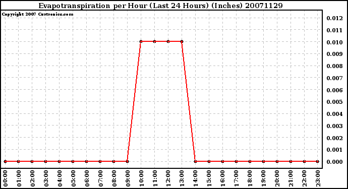 Milwaukee Weather -- 20071129 Evapotranspiration per Hour (Last 24 Hours) (Inches) -- From curtronics.com by Curt Blank