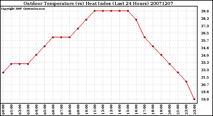20071207 Outdoor Temperature (vs) Heat Index (Last 24 Hours)