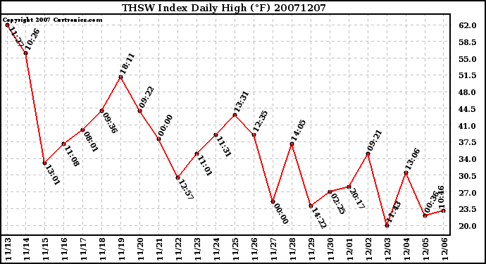 Milwaukee Weather -- 20071207 THSW Index Daily High (°F) -- From curtronics.com by Curt Blank