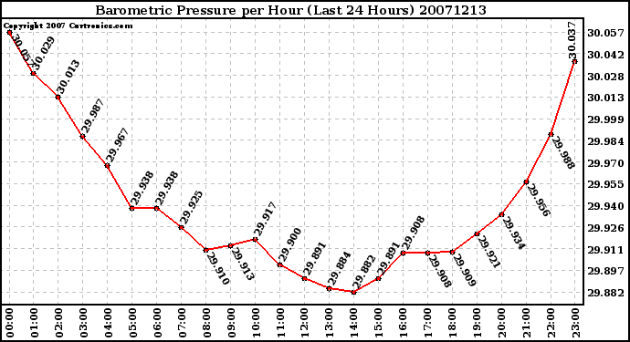 20071213 Barometric Pressure per Hour (Last 24 Hours)