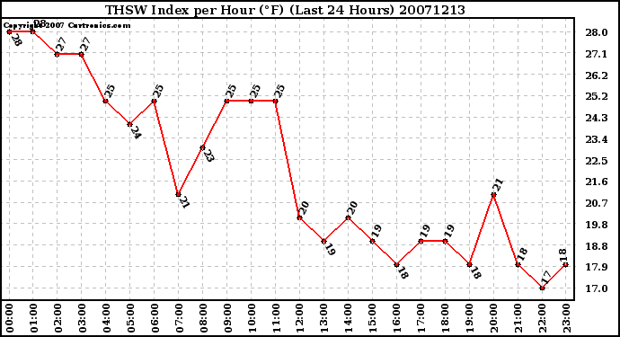 Milwaukee Weather -- 20071213 THSW Index per Hour (°F) (Last 24 Hours) -- From curtronics.com by Curt Blank