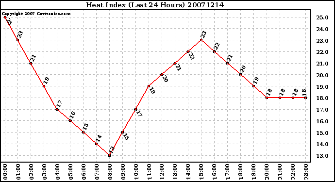 Milwaukee Weather -- 20071214 Heat Index (Last 24 Hours) -- From curtronics.com by Curt Blank