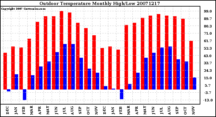 Milwaukee Weather -- 20071217 Outdoor Temperature Monthly High/Low -- From curtronics.com by Curt Blank