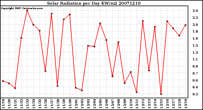 Milwaukee Weather -- 20071219 Solar Radiation per Day KW/m2 -- From curtronics.com by Curt Blank