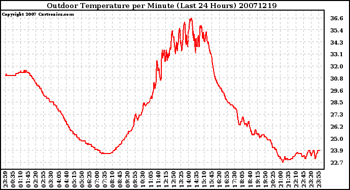 Milwaukee Weather -- 20071219 Outdoor Temperature per Minute (Last 24 Hours) -- From curtronics.com by Curt Blank