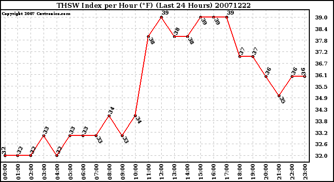 Milwaukee Weather -- 20071222 THSW Index per Hour (°F) (Last 24 Hours) -- From curtronics.com by Curt Blank