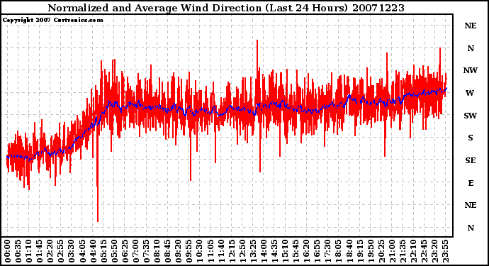 20071223 Normalized and Average Wind Direction (Last 24 Hours)