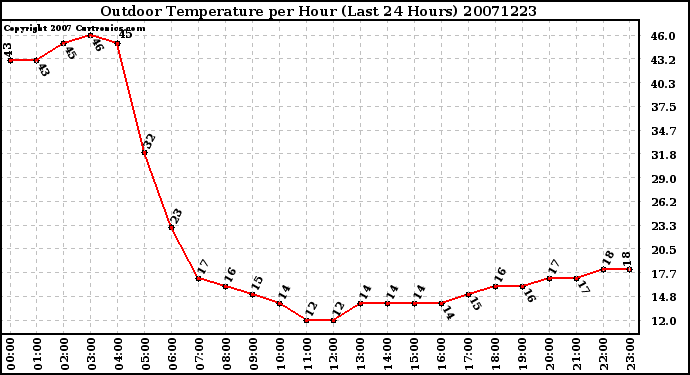 Milwaukee Weather -- 20071223 Outdoor Temperature per Hour (Last 24 Hours) -- From curtronics.com by Curt Blank
