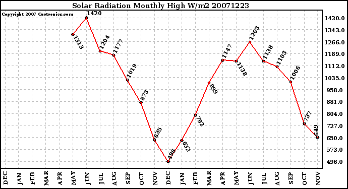 20071223 Solar Radiation Monthly High W/m2