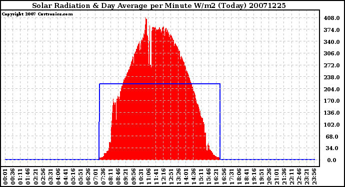 Milwaukee Weather -- 20071225 Solar Radiation & Day Average per Minute W/m2 (Today) -- From curtronics.com by Curt Blank