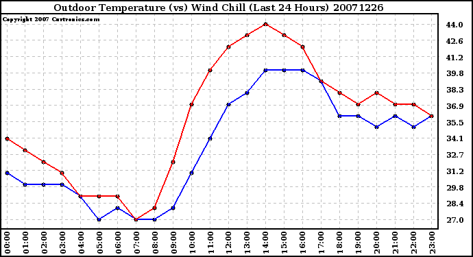 Milwaukee Weather -- 20071226 Outdoor Temperature (vs) Wind Chill (Last 24 Hours) -- From curtronics.com by Curt Blank