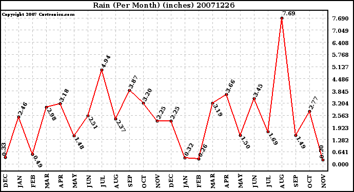 20071226 Rain (Per Month) (inches)