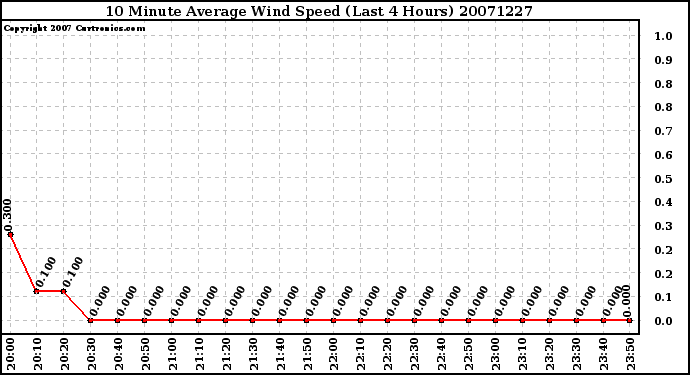 20071227 10 Minute Average Wind Speed (Last 4 Hours)