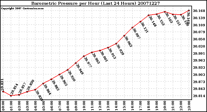 Milwaukee Weather -- 20071227 Barometric Pressure per Hour (Last 24 Hours) -- From curtronics.com by Curt Blank