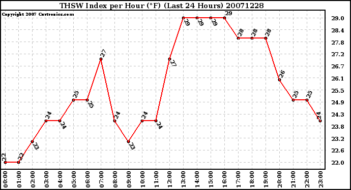 Milwaukee Weather -- 20071228 THSW Index per Hour (°F) (Last 24 Hours) -- From curtronics.com by Curt Blank