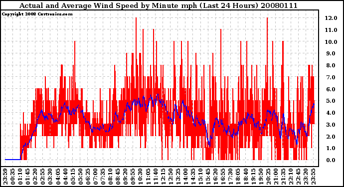 20080111 Actual and Average Wind Speed by Minute mph (Last 24 Hours)