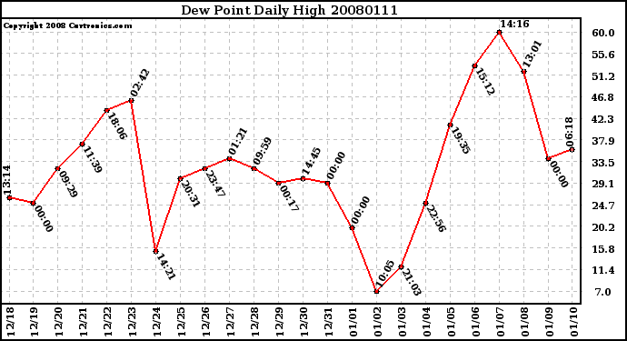 Milwaukee Weather -- 20080111 Dew Point Daily High -- From curtronics.com by Curt Blank