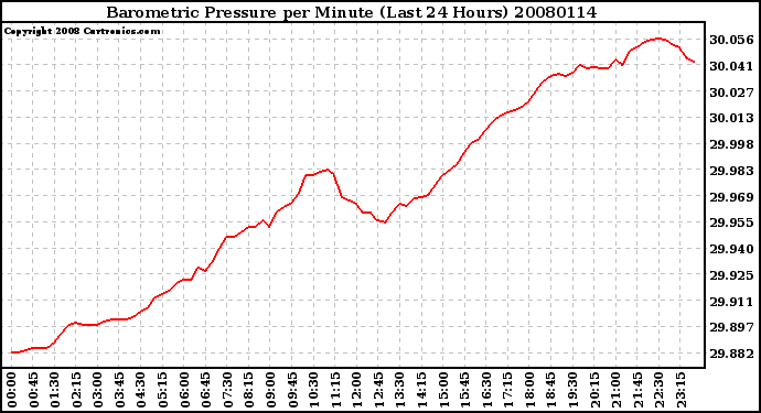 Milwaukee Weather -- 20080114 Barometric Pressure per Minute (Last 24 Hours) -- From curtronics.com by Curt Blank
