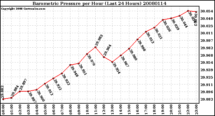 20080114 Barometric Pressure per Hour (Last 24 Hours)