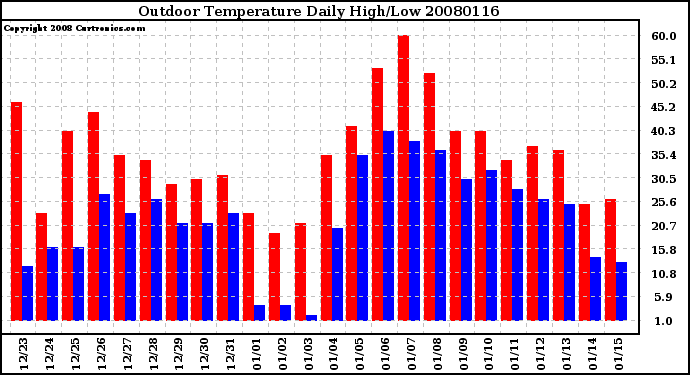 Milwaukee Weather -- 20080116 Outdoor Temperature Daily High/Low -- From curtronics.com by Curt Blank