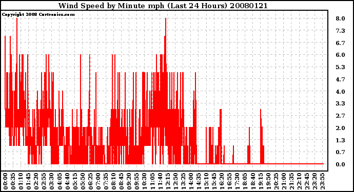 20080121 Wind Speed by Minute mph (Last 24 Hours)