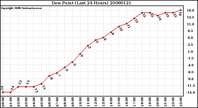 Milwaukee Weather -- 20080121 Dew Point (Last 24 Hours) -- From curtronics.com by Curt Blank