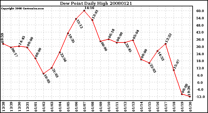 Milwaukee Weather -- 20080121 Dew Point Daily High -- From curtronics.com by Curt Blank