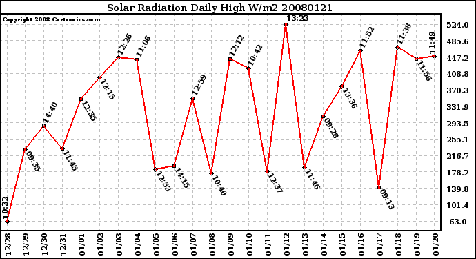 Milwaukee Weather -- 20080121 Solar Radiation Daily High W/m2 -- From curtronics.com by Curt Blank