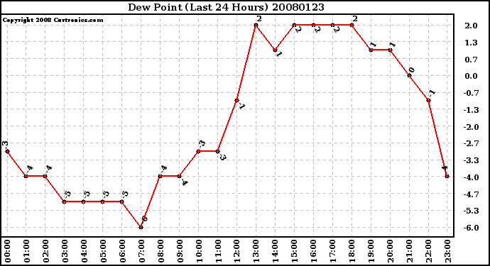 Milwaukee Weather -- 20080123 Dew Point (Last 24 Hours) -- From curtronics.com by Curt Blank