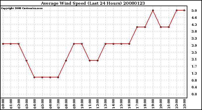 Milwaukee Weather -- 20080123 Average Wind Speed (Last 24 Hours) -- From curtronics.com by Curt Blank