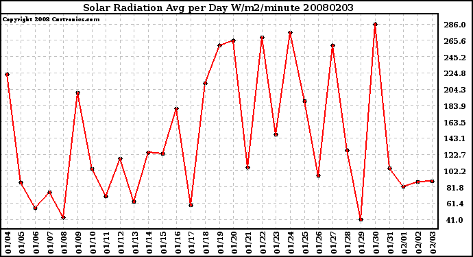 20080203 Solar Radiation Avg per Day W/m2/minute