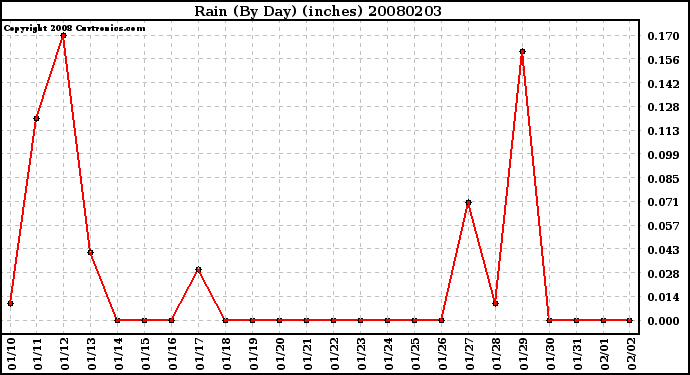 Milwaukee Weather -- 20080203 Rain (By Day) (inches) -- From curtronics.com by Curt Blank