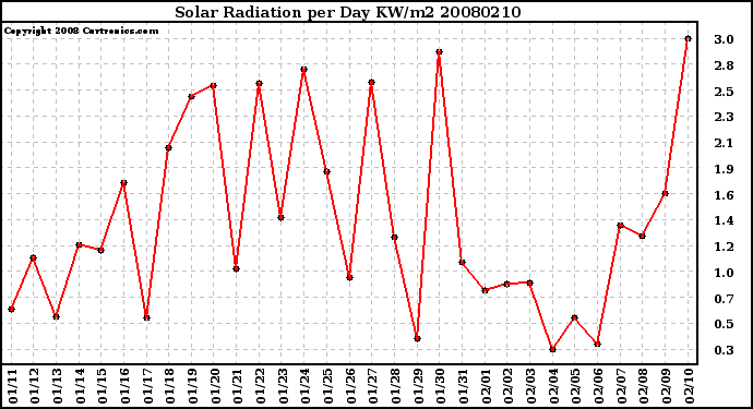 Milwaukee Weather -- 20080210 Solar Radiation per Day KW/m2 -- From curtronics.com by Curt Blank