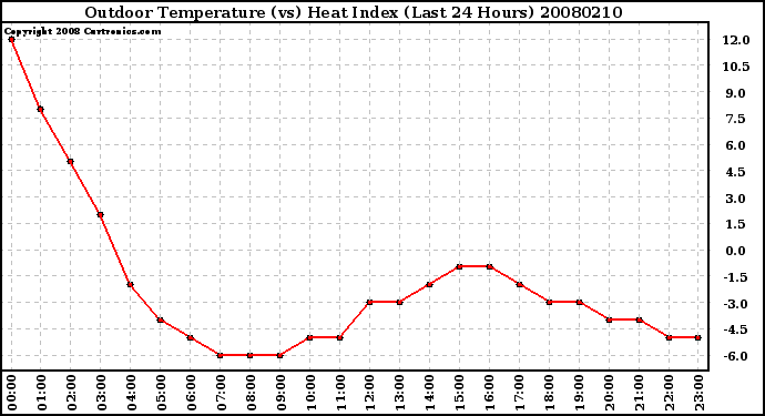 Milwaukee Weather -- 20080210 Outdoor Temperature (vs) Heat Index (Last 24 Hours) -- From curtronics.com by Curt Blank