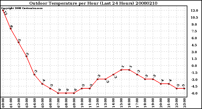20080210 Outdoor Temperature per Hour (Last 24 Hours)