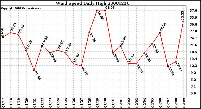 Milwaukee Weather -- 20080210 Wind Speed Daily High -- From curtronics.com by Curt Blank