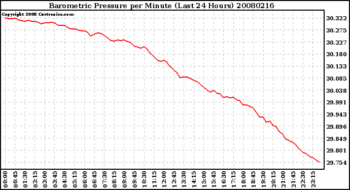 Milwaukee Weather -- 20080216 Barometric Pressure per Minute (Last 24 Hours) -- From curtronics.com by Curt Blank