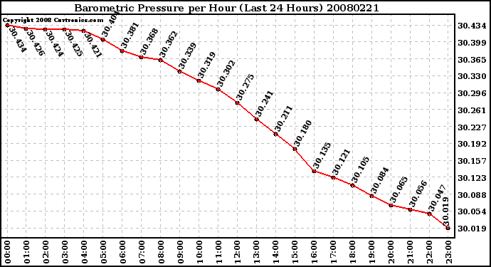 Milwaukee Weather -- 20080221 Barometric Pressure per Hour (Last 24 Hours) -- From curtronics.com by Curt Blank