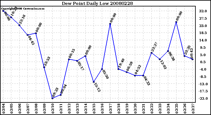 Milwaukee Weather -- 20080228 Dew Point Daily Low -- From curtronics.com by Curt Blank