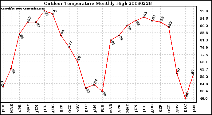 Milwaukee Weather -- 20080228 Outdoor Temperature Monthly High -- From curtronics.com by Curt Blank